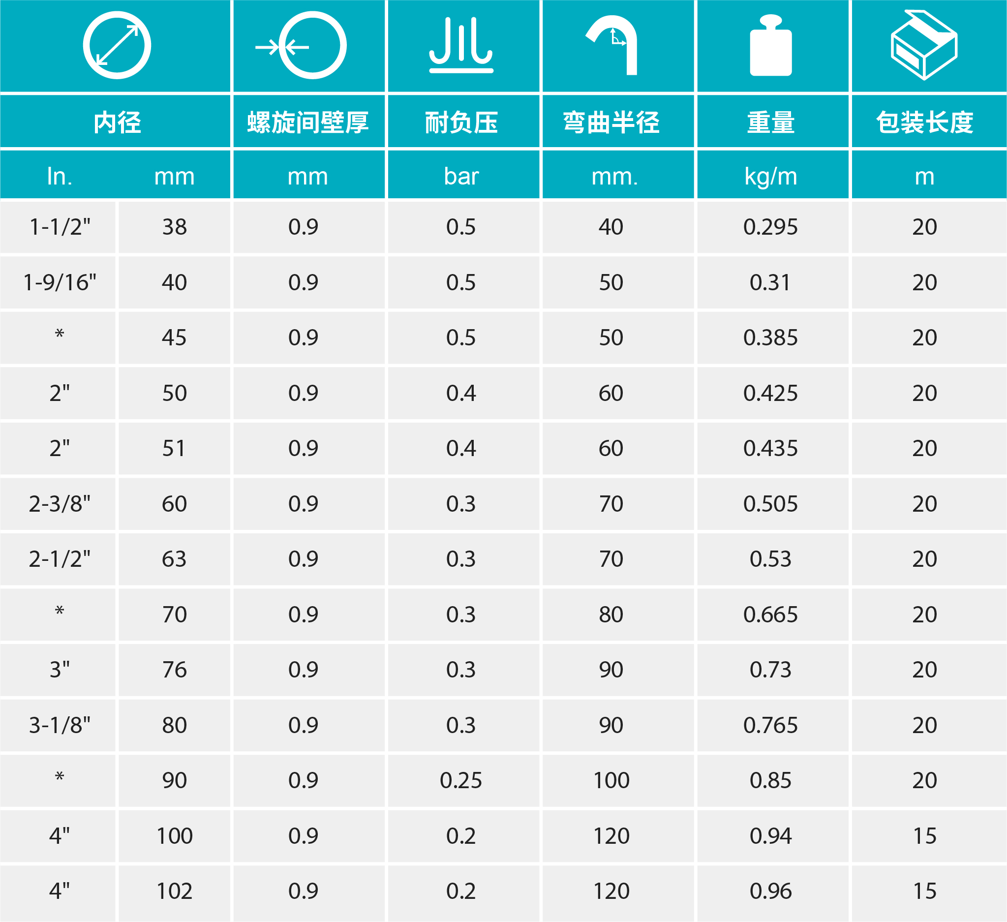 - 內(nèi)壁平滑,確保介質(zhì)流動(dòng)性,所有口徑非螺旋處恒定壁厚0.9mm