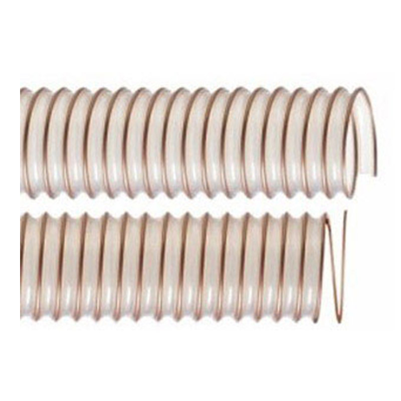 - 半透明PU管壁, 帶鍍銅色包塑鋼絲螺旋加強(qiáng)