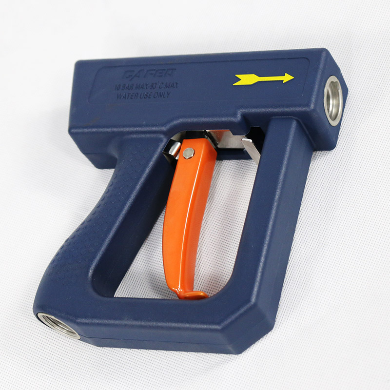 - 該款水槍由高質(zhì)量的300系列不銹鋼結(jié)構(gòu)組成,外形設(shè)計(jì)持久耐用,且符合人體工程學(xué),手感舒適。 設(shè)計(jì)安全,能在水槍不慎墜地時(shí)防止前扳機(jī)打開(kāi)造成意外噴射熱水的工傷事故。 具有自動(dòng)關(guān)閉的功能,釋放扳機(jī)后即刻停止出水,具有高效和節(jié)水的效應(yīng)。 所需要的噴射強(qiáng)度可以連續(xù)調(diào)節(jié)??膳涮椎慕宇^口徑為1/2″。