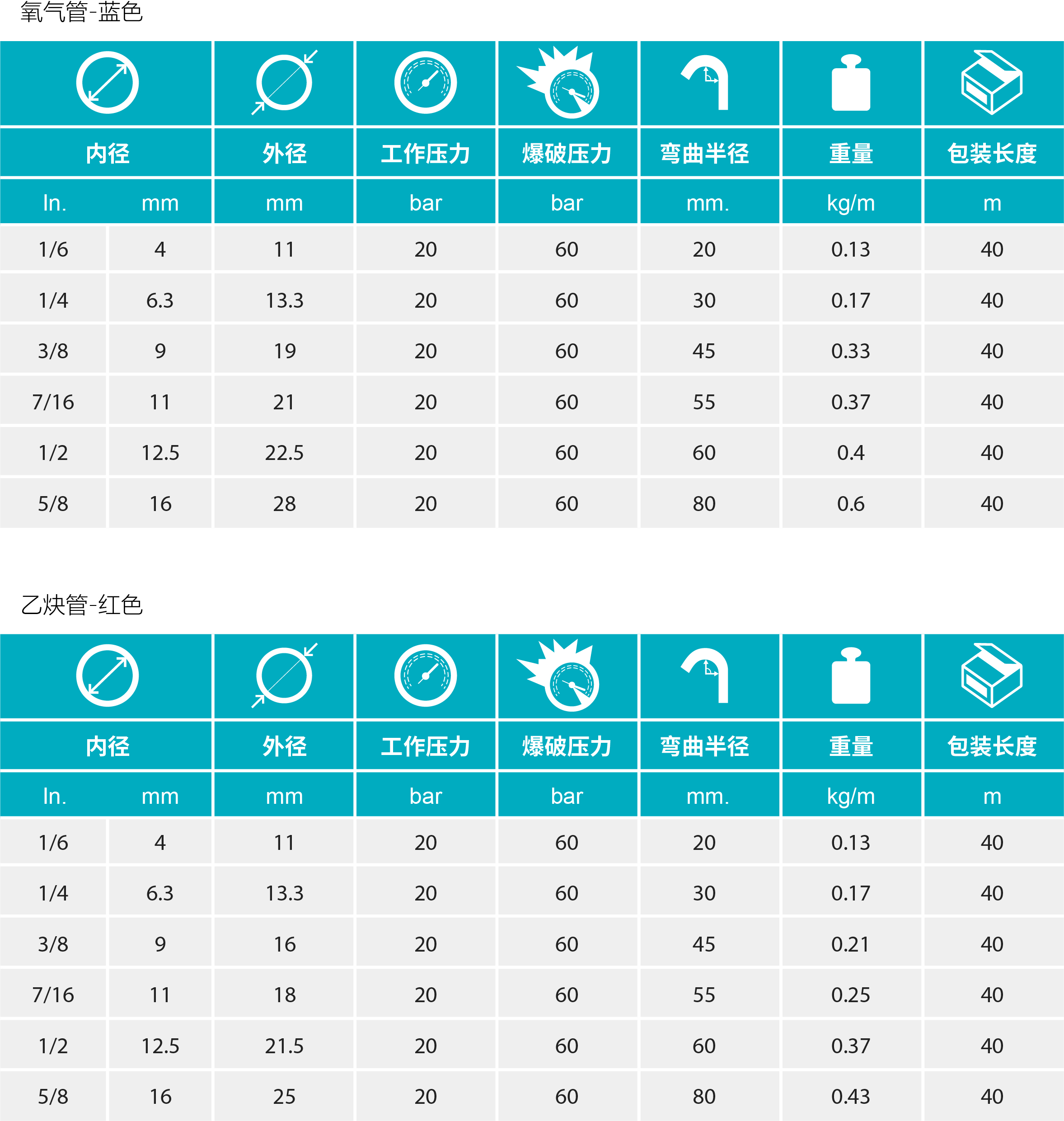 【外層】EPDM橡膠材質(zhì),紅色走乙炔,藍(lán)色走氧氣