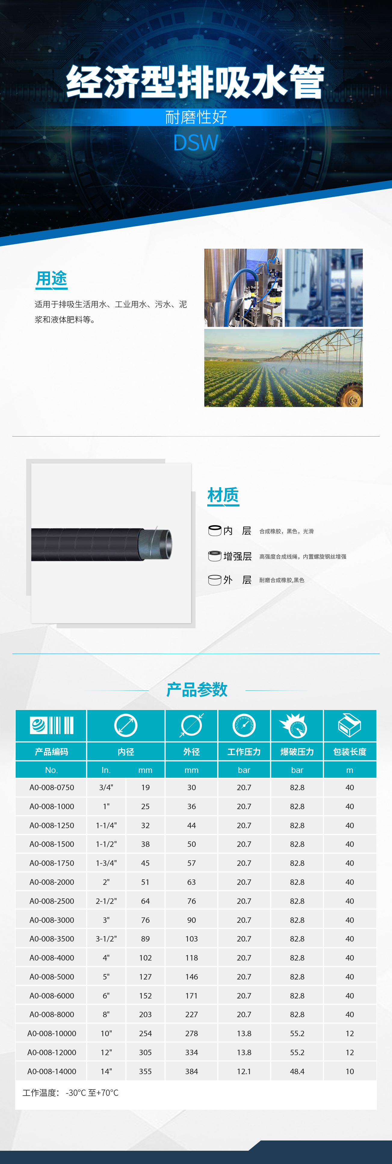 適用于排吸生活用水、工業(yè)用水、污水、泥漿和液體肥料等