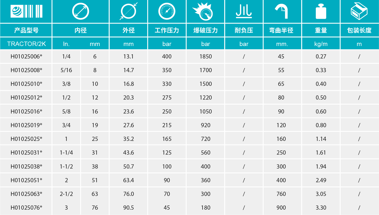- 高柔韌性和彎曲半徑極小 重量輕 型號擴(kuò)展到DN76 至DN76均通過SAE 100 R4抗真空認(rèn)證