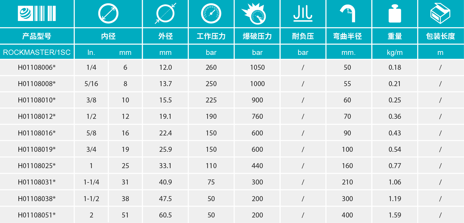 - 高耐熱性 工作壓力大 外膠層提供卓越保護(hù) 高耐氣候和高耐臭氧性 對(duì)各種規(guī)格的阻燃性 外層抗靜電抗毒腐蝕 至DN31均通過(guò)SAE 100 R4抗真空認(rèn)證