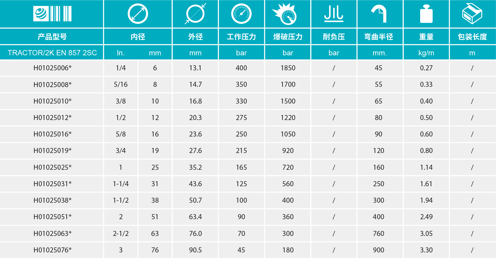 - 高柔韌性和彎曲半徑極小 重量輕 型號(hào)擴(kuò)展到DN76 至DN76均通過SAE 100 R4抗真空認(rèn)證