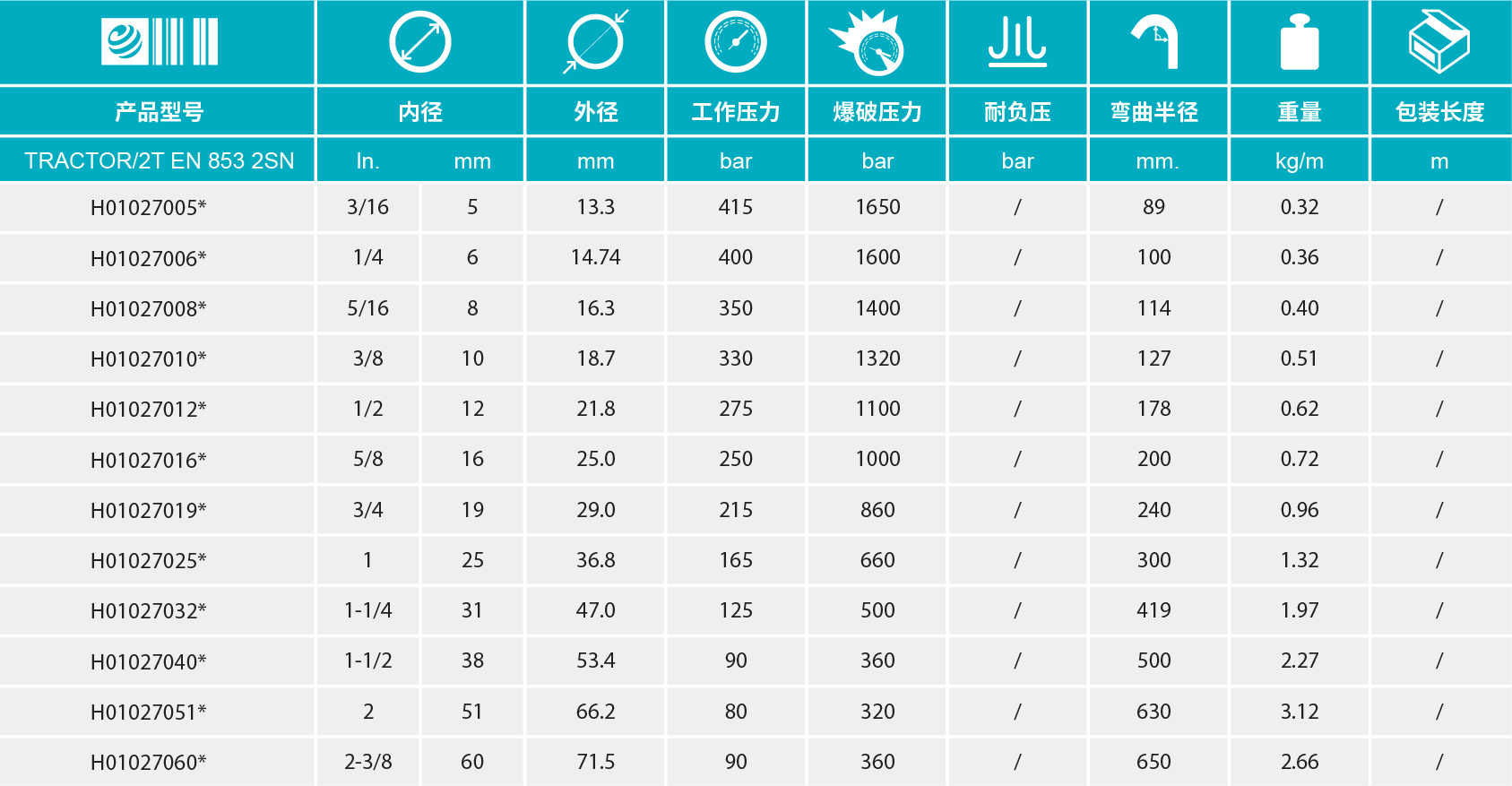 - 【應(yīng)用標(biāo)準(zhǔn)】EN 853 2SN - SAE 100 R2AT - ISO 1436-1 2SN/R2AT