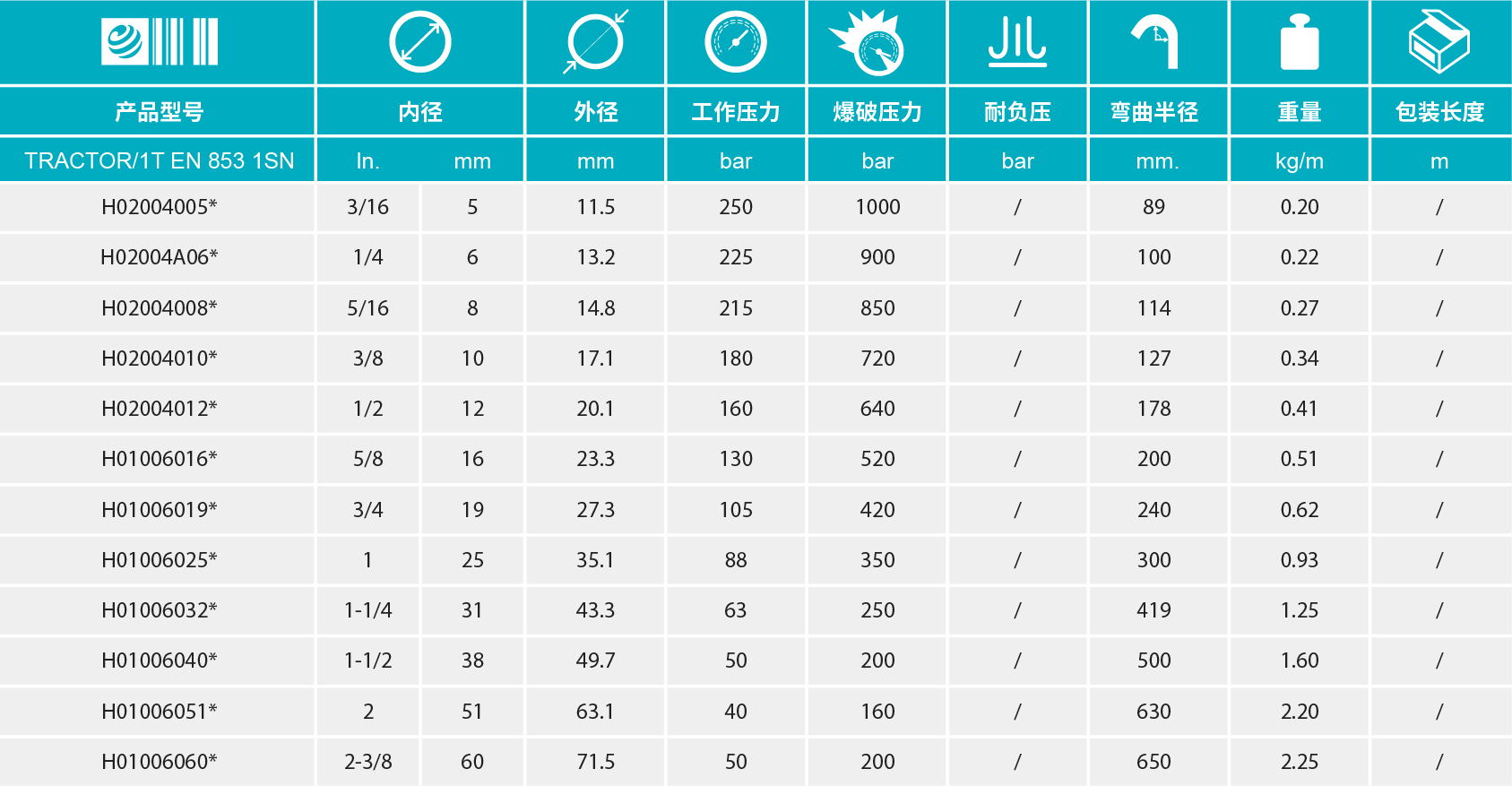 - 【應(yīng)用標(biāo)準(zhǔn)】EN 853 1SN - SAE 100 R1AT - ISO 1436-1 1SN/R1AT