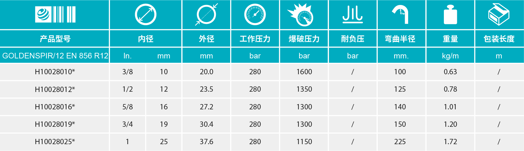 - 【應(yīng)用標(biāo)準(zhǔn)】EN 856 R12 - SAE 100 R12 - ISO 3862-1 R12