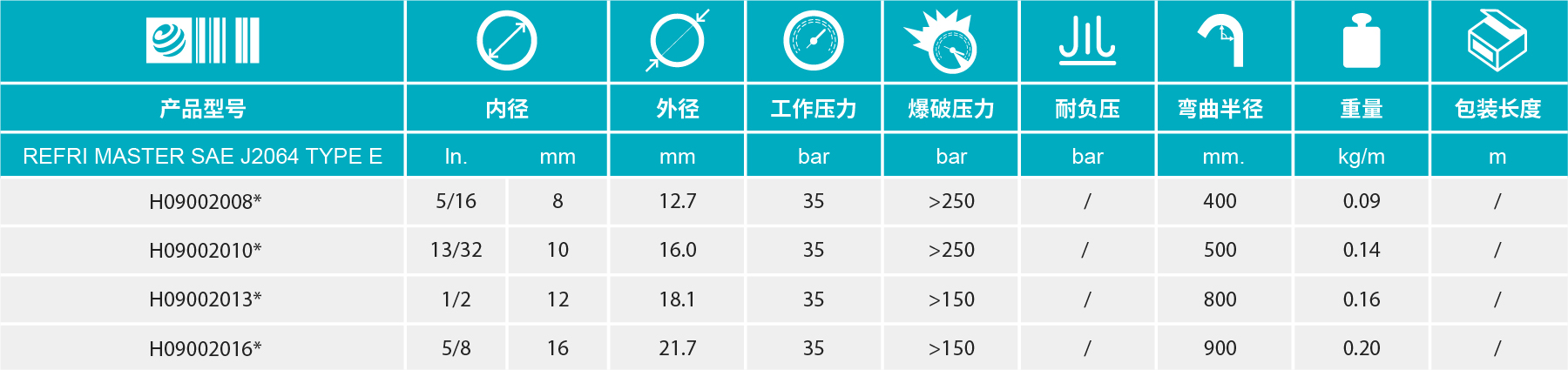 通用性膠管,兼容絕大多數(shù)普通制冷劑和壓縮機(jī)潤(rùn)滑劑 制冷劑低滲透率 尺寸緊湊