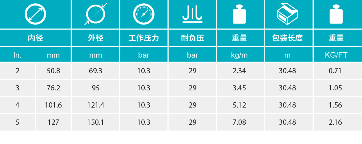 【增強(qiáng)層】多層螺旋纏繞的合成纖維,帶兩條鍍鋅金屬螺旋絲