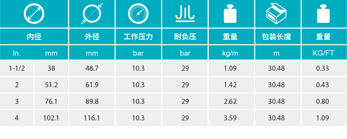 - 【增強(qiáng)層】多層合成纖維纏繞并帶有2根螺旋鋼絲