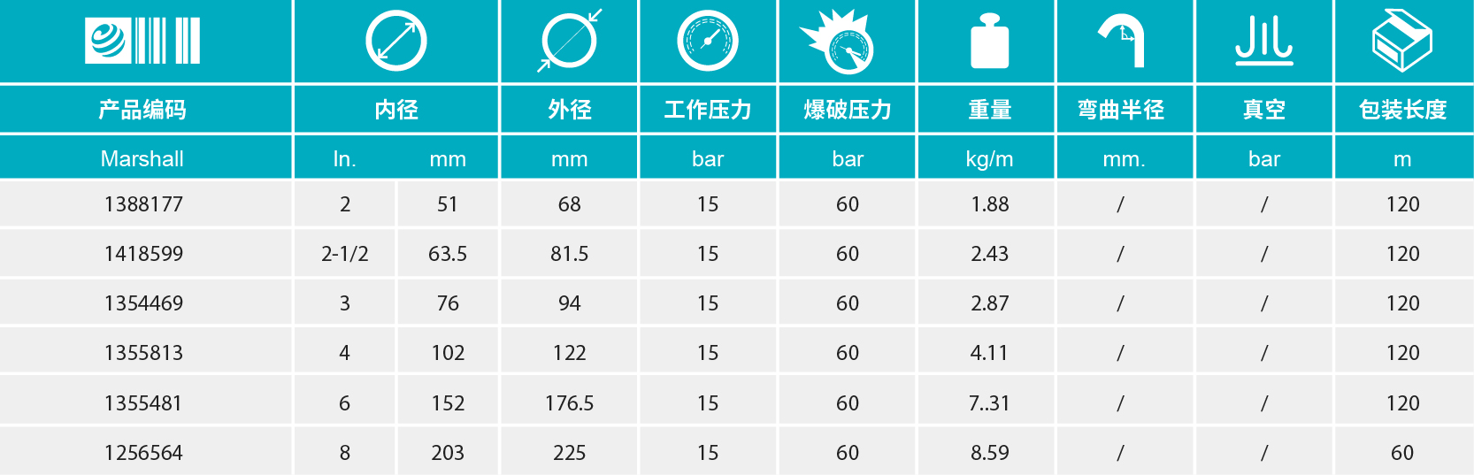 - 導(dǎo)電軟壁軟管,用于從罐車和駁船裝卸輸送石油產(chǎn)品,并用于其它工業(yè)領(lǐng)域應(yīng)用,適合輸送芳烴含量高達50%的石油產(chǎn)品;可帶扣壓式或建入式接頭供應(yīng)。
