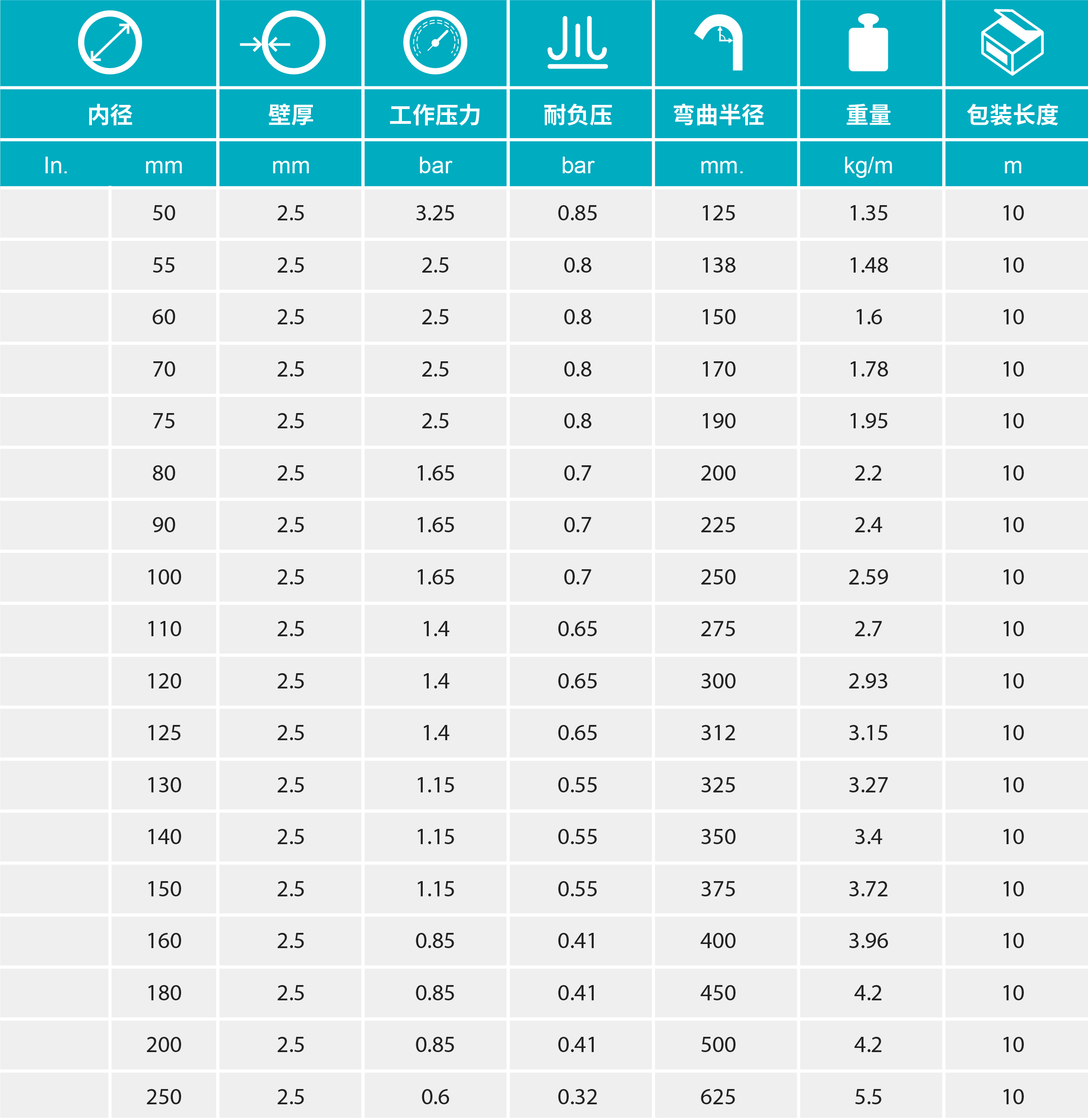 適用于磨損性非常強的物料抽吸和輸送例如顆粒,礫石和其他磨損性物料。適用在建筑、礦山、卡車、農(nóng)業(yè)等行業(yè)使用,具有良好的耐磨性和耐真空性,耐礦物油和石油衍生物