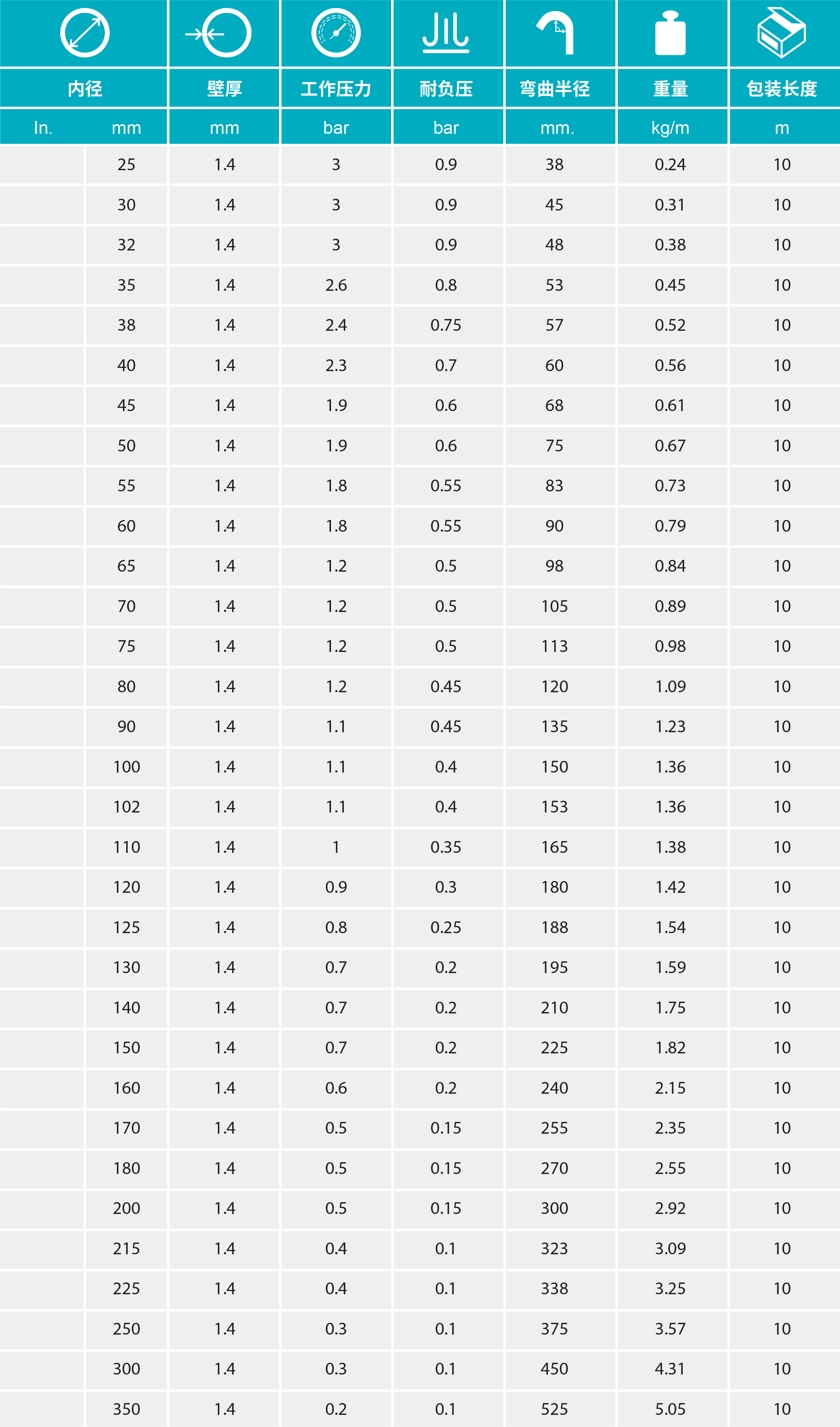 - 食品級聚醚型聚氨酯材質(zhì)管壁,帶鍍銅色包塑鋼絲加強筋,內(nèi)壁平滑