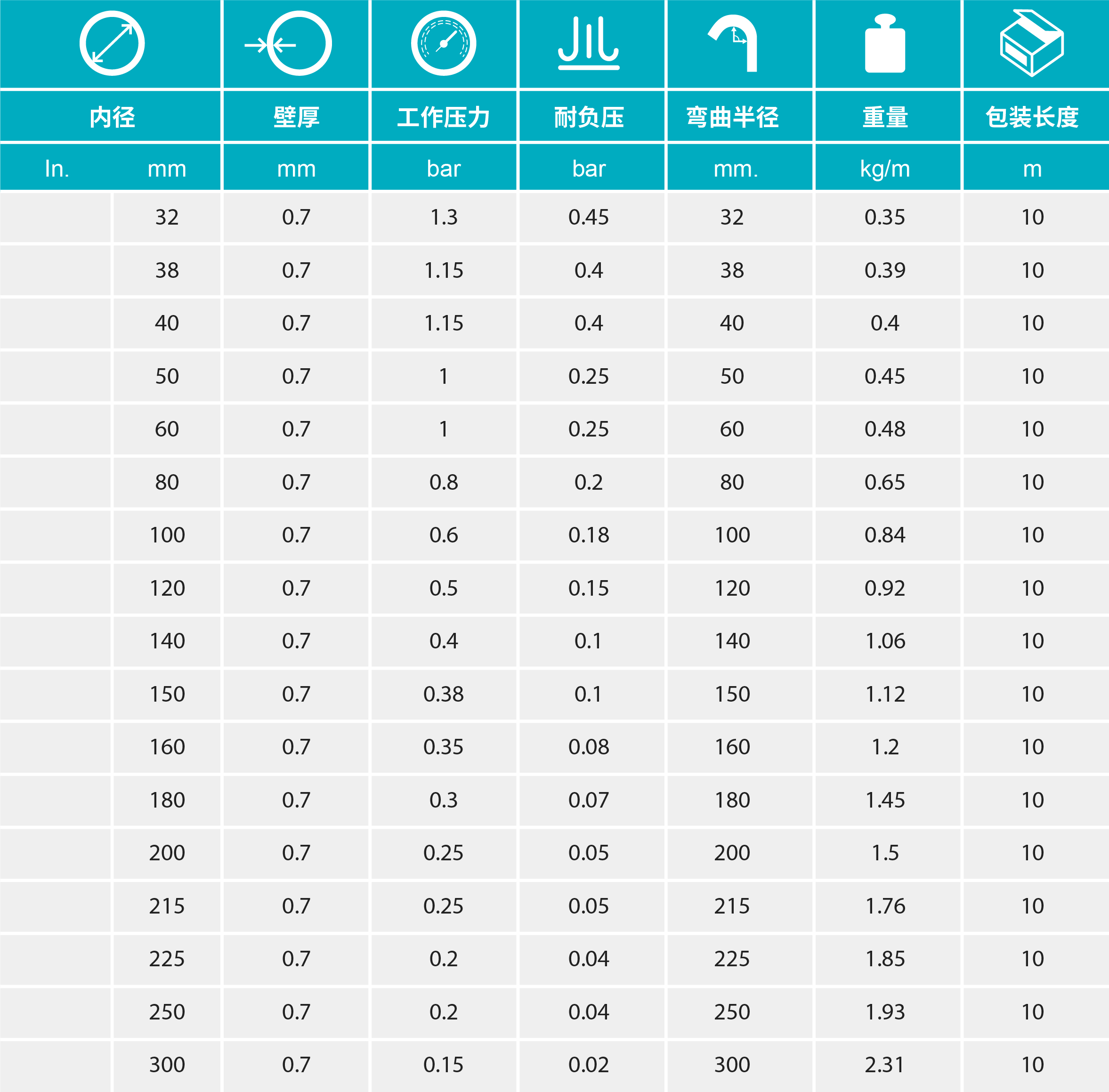 內(nèi)壁非常平滑以保證物料在管內(nèi)流動順暢,具有良好的柔韌性