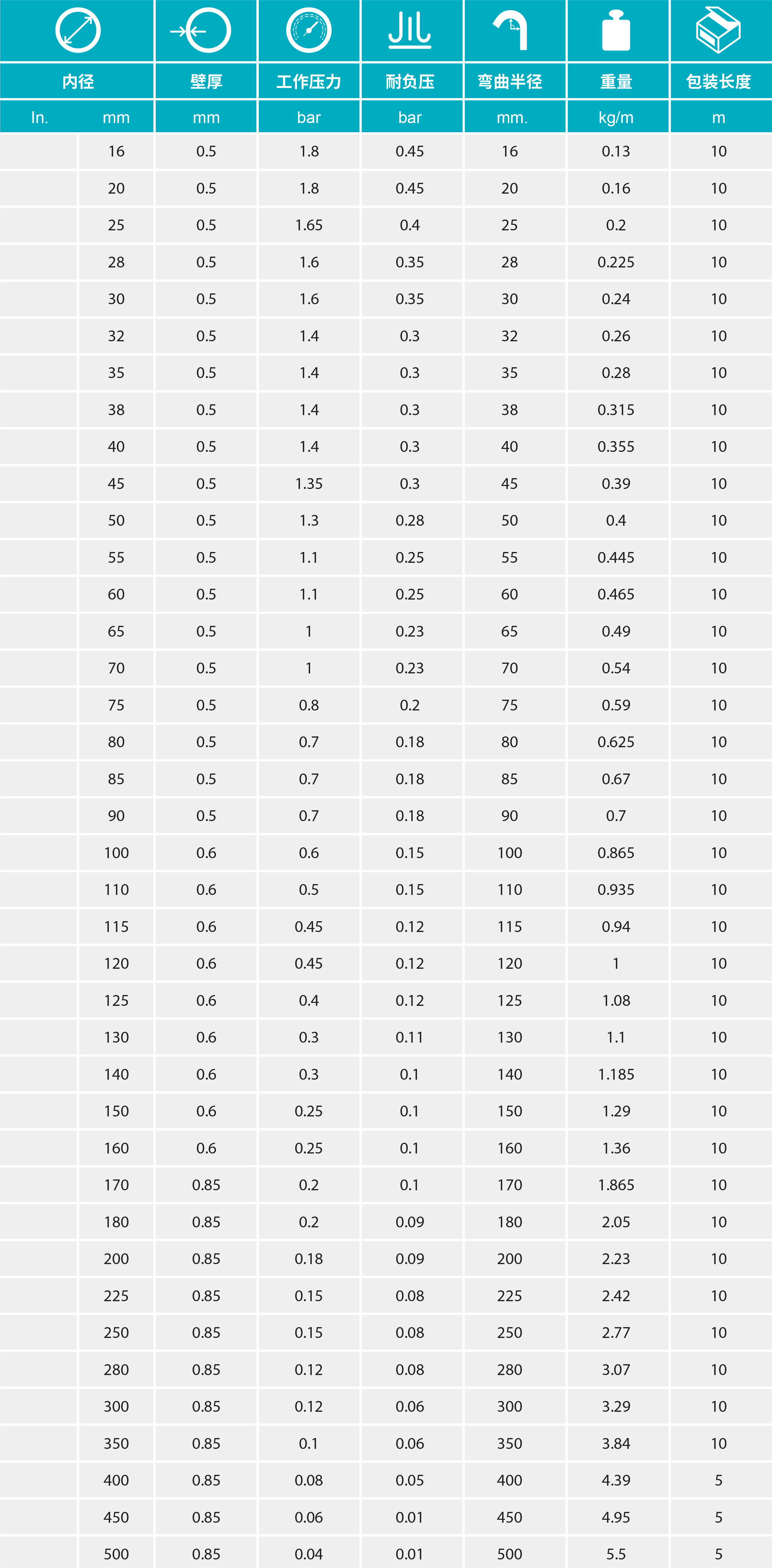 • 內(nèi)壁平滑以保證物料在管內(nèi)流動順暢,具有良好的柔韌性