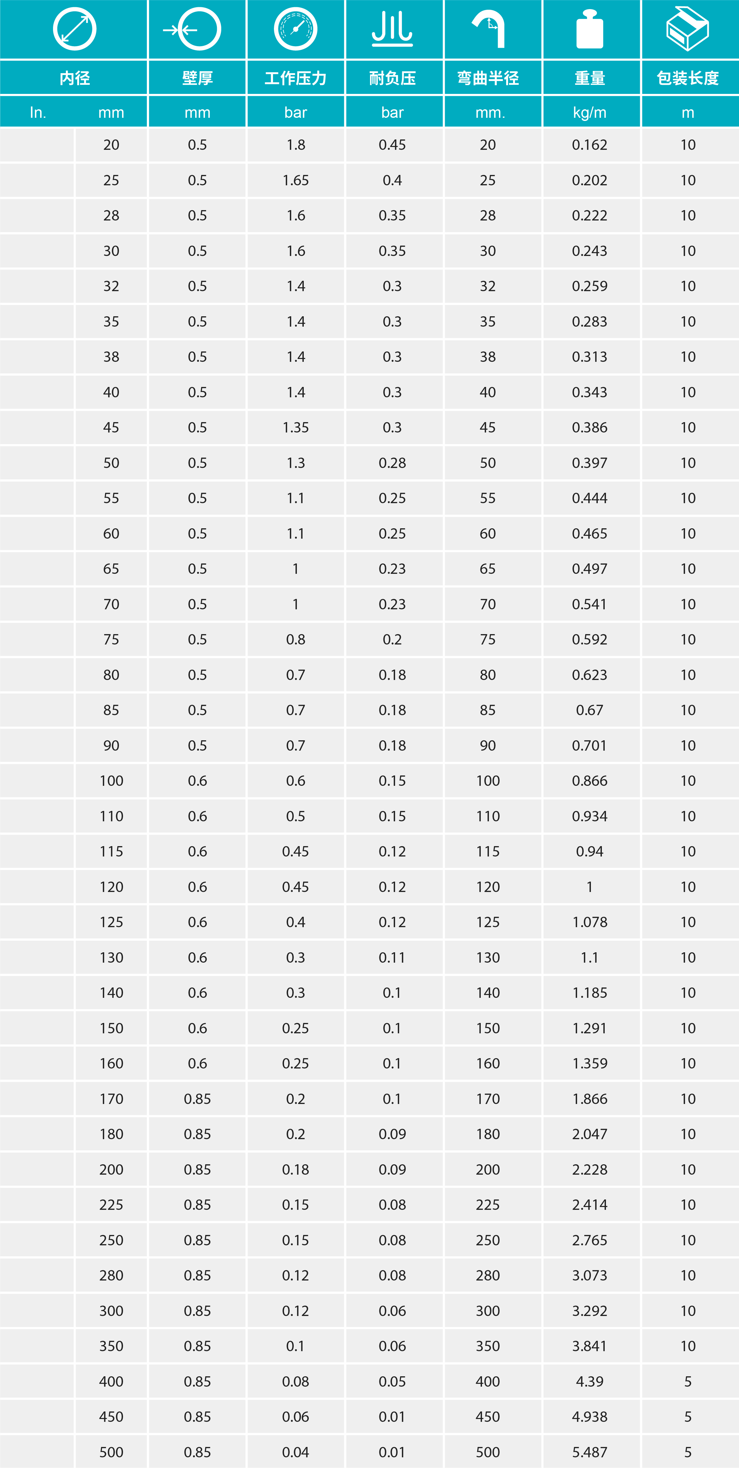 - 重量輕且具有良好的柔韌性,內(nèi)壁平滑以保證物料在管內(nèi)流動順暢