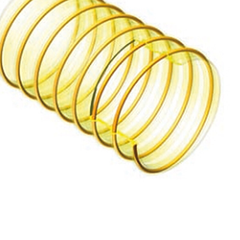 - 顏色:透明PU管壁,帶螺旋狀塑筋加強(qiáng),塑筋上帶鍍銅鋼絲