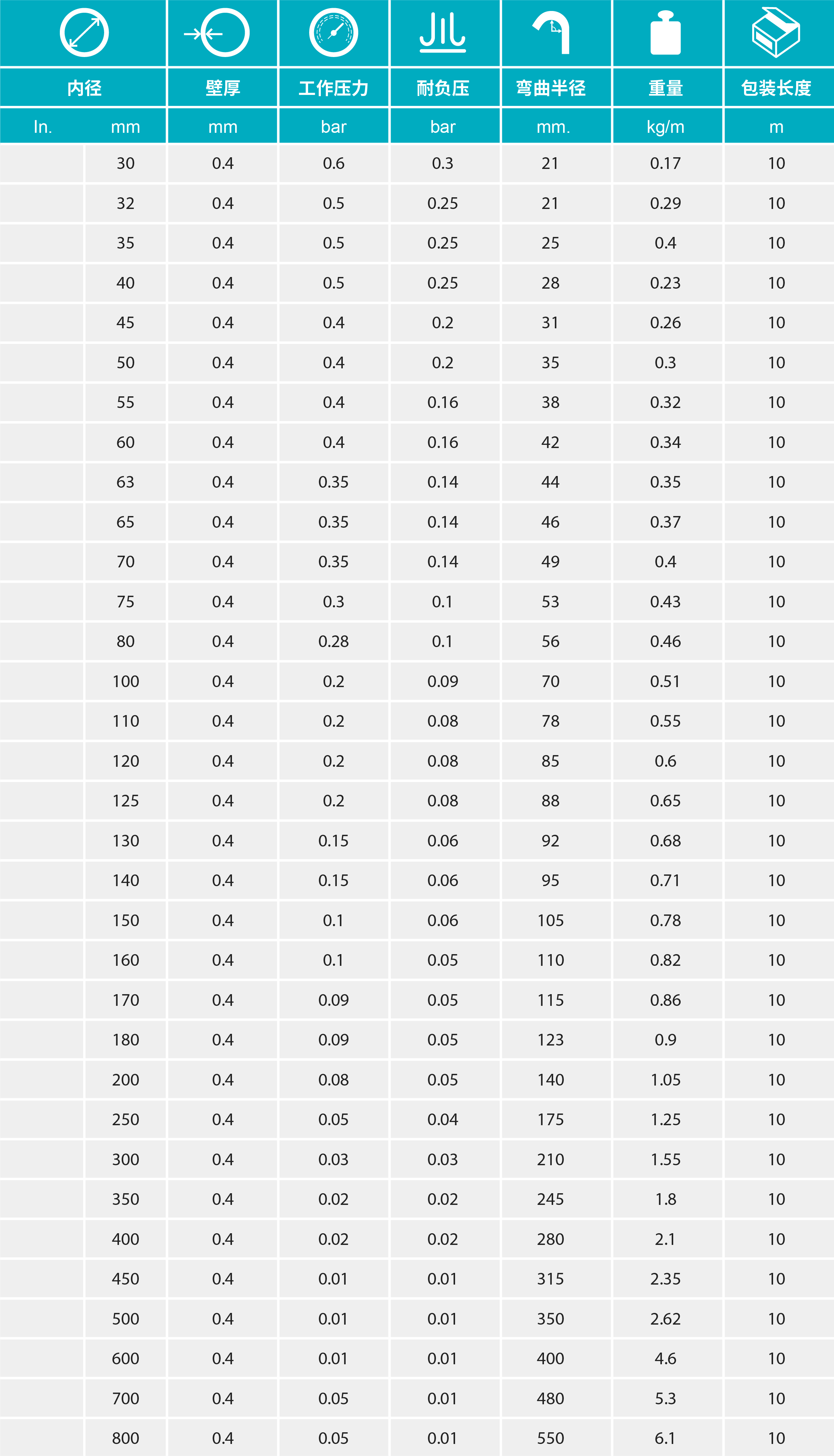 - 質(zhì)極輕且極其柔軟,具有良好的可壓縮性,內(nèi)壁平滑以保證物料在管內(nèi)流動(dòng)順暢
