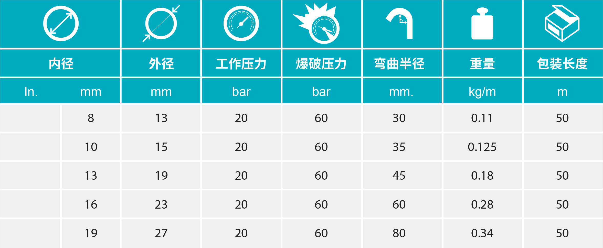 結(jié)構(gòu):柔軟的PVC軟管,聚酯纖維增強(qiáng)
