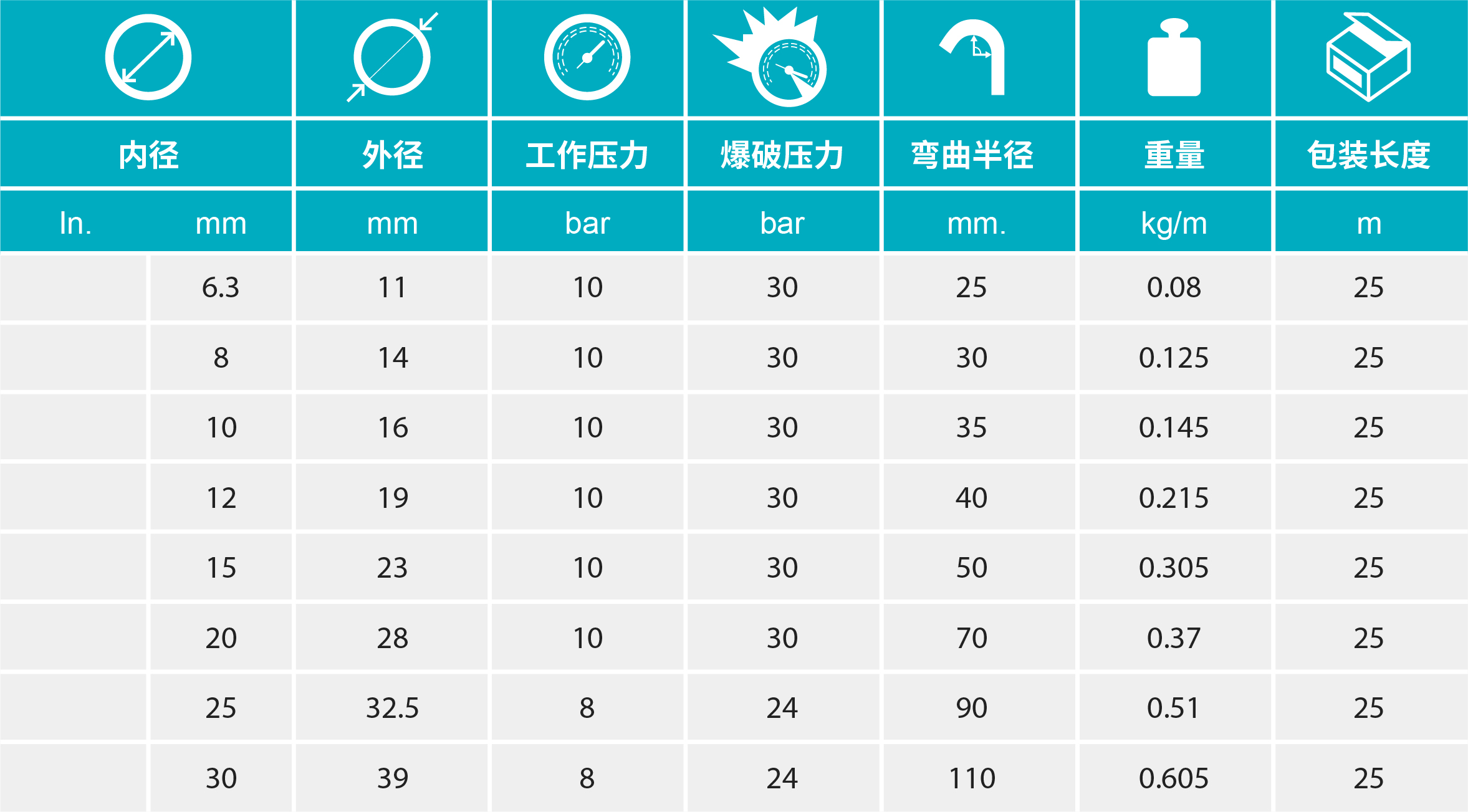 結(jié)構(gòu):一種柔軟的PVC軟管,聚酯纖維編織增強(qiáng)