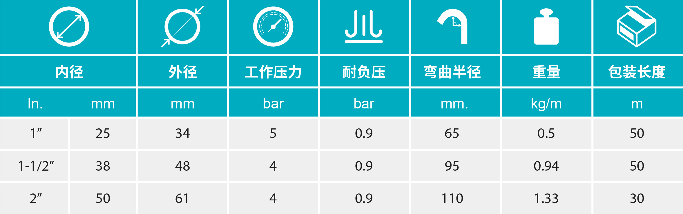 設計用于中等壓力排吸無強腐蝕性的液體。適合用作游艇與房車配套的飲用水輸送管