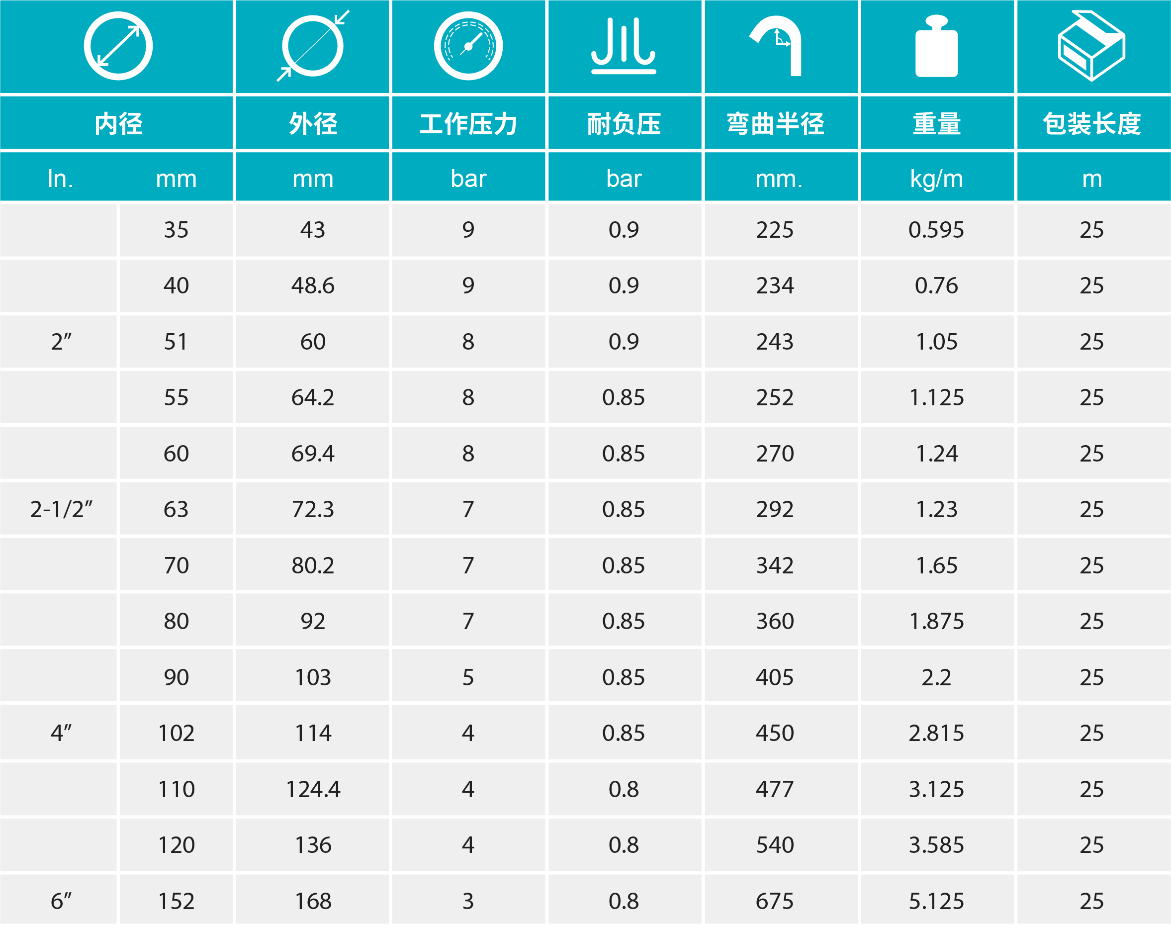 - PVC螺旋塑筋增強(qiáng),使軟管具有良好的抗沖擊性能