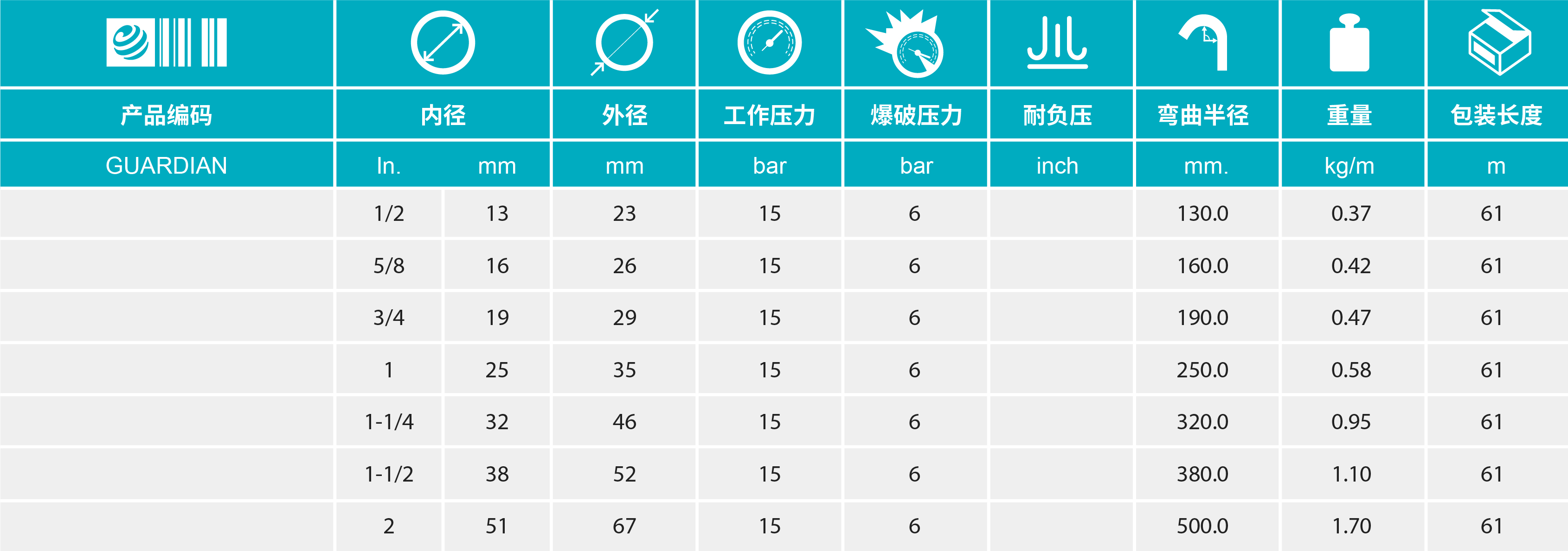 一般工業(yè)應(yīng)用中使用的熱水及飽和蒸汽膠管,在 15 bar壓力下熱水溫度可達 90℃;在6bar壓力下開放蒸汽溫度可達165℃。