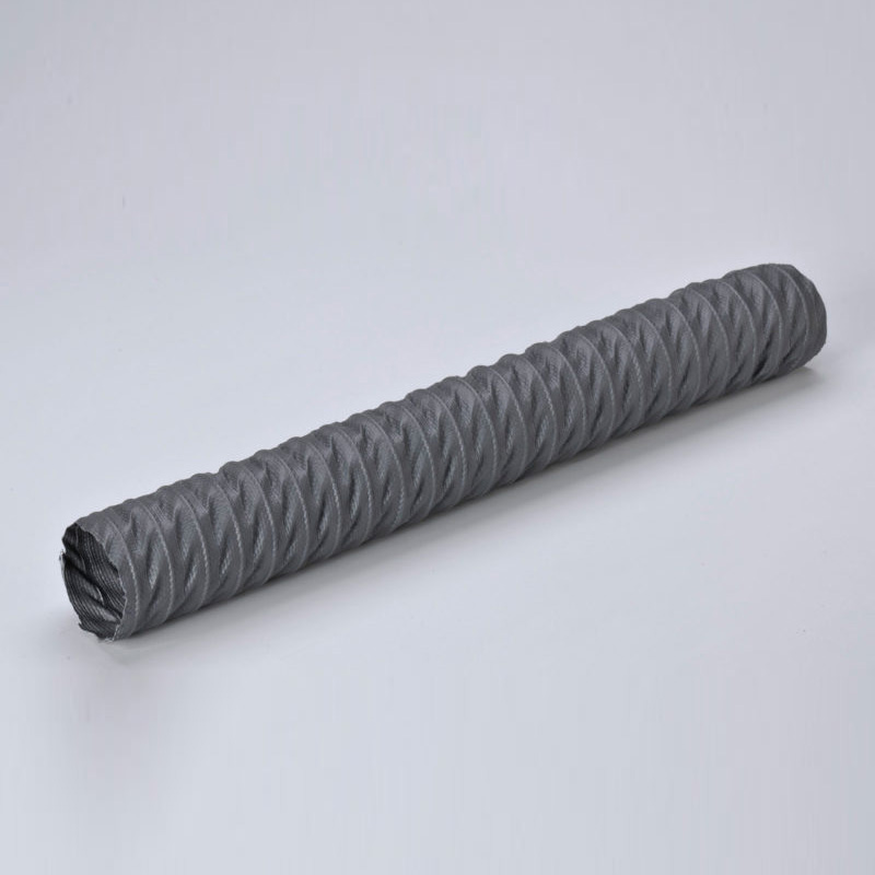 柔韌灰色軟管,聚酯織物覆阻燃PU涂層,夾層之間焊接鋼螺旋加強(qiáng)