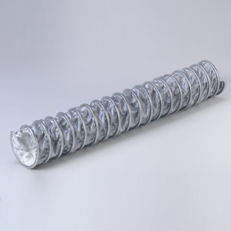 雙層特殊耐高溫硅膠外涂層,玻璃纖維織物內(nèi)層,鍍鋅鋼螺旋增強(qiáng)。瞬間溫度可耐550°C,不易燃