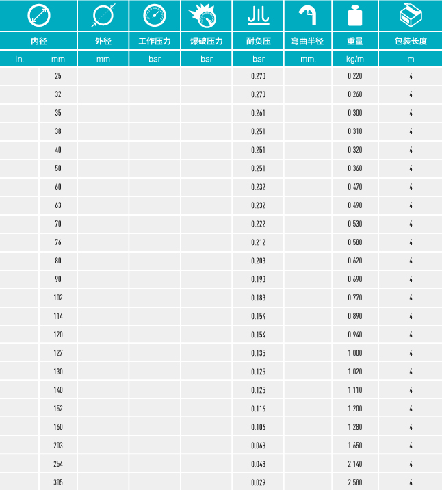 雙層玻璃纖維織物覆硅膠涂層,內(nèi)嵌鍍銅鋼絲螺旋增強