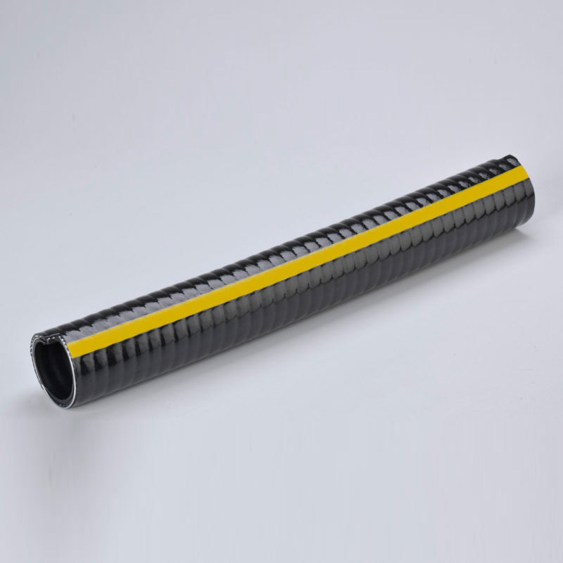 黑色帶黃色條紋軟管,特殊PVC復(fù)合材質(zhì),螺旋鋼絲和聚酯纖維網(wǎng)雙重增強(qiáng)