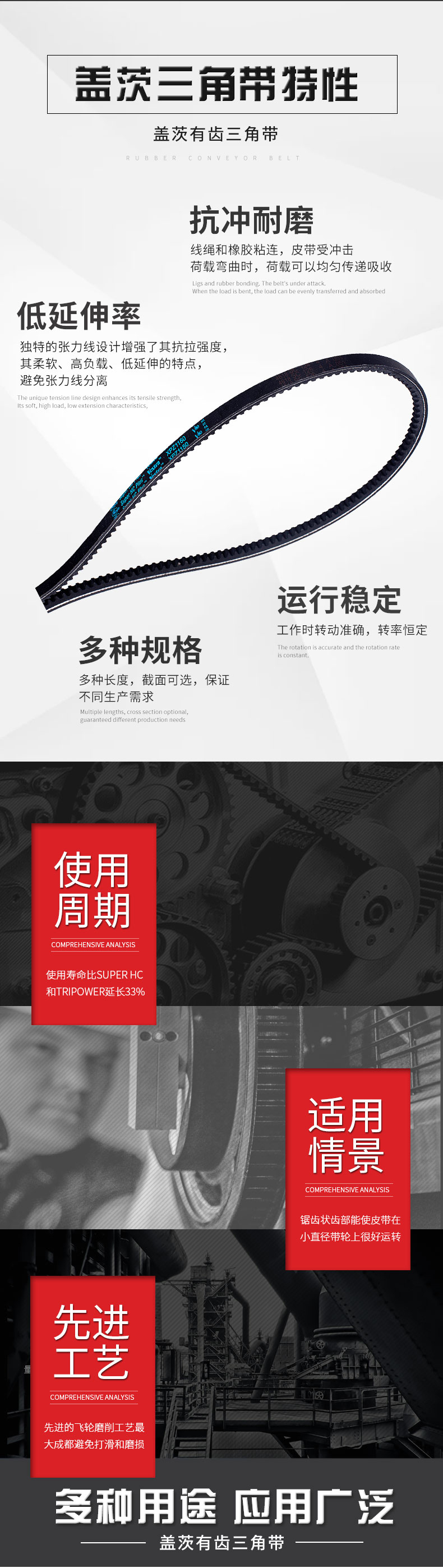 模具成型的齒部使皮帶更加適合小帶輪傳動。