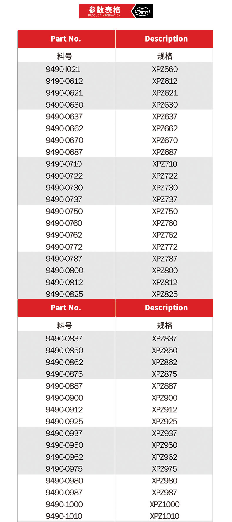 蓋茨GTAES 有齒三角帶 傳動帶 XPZ