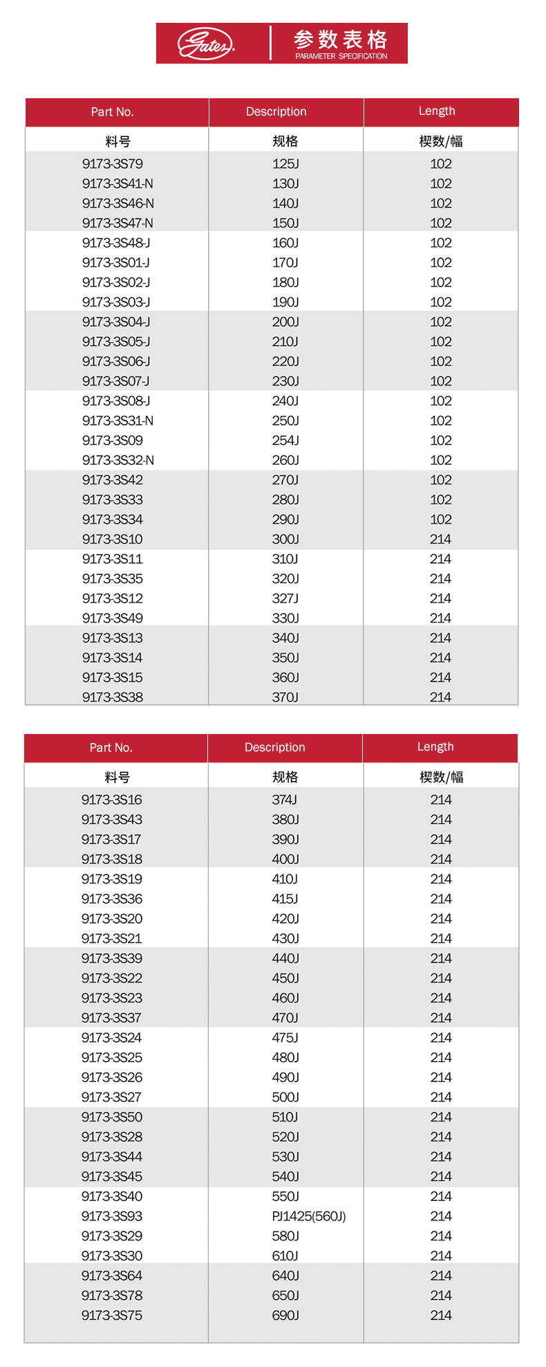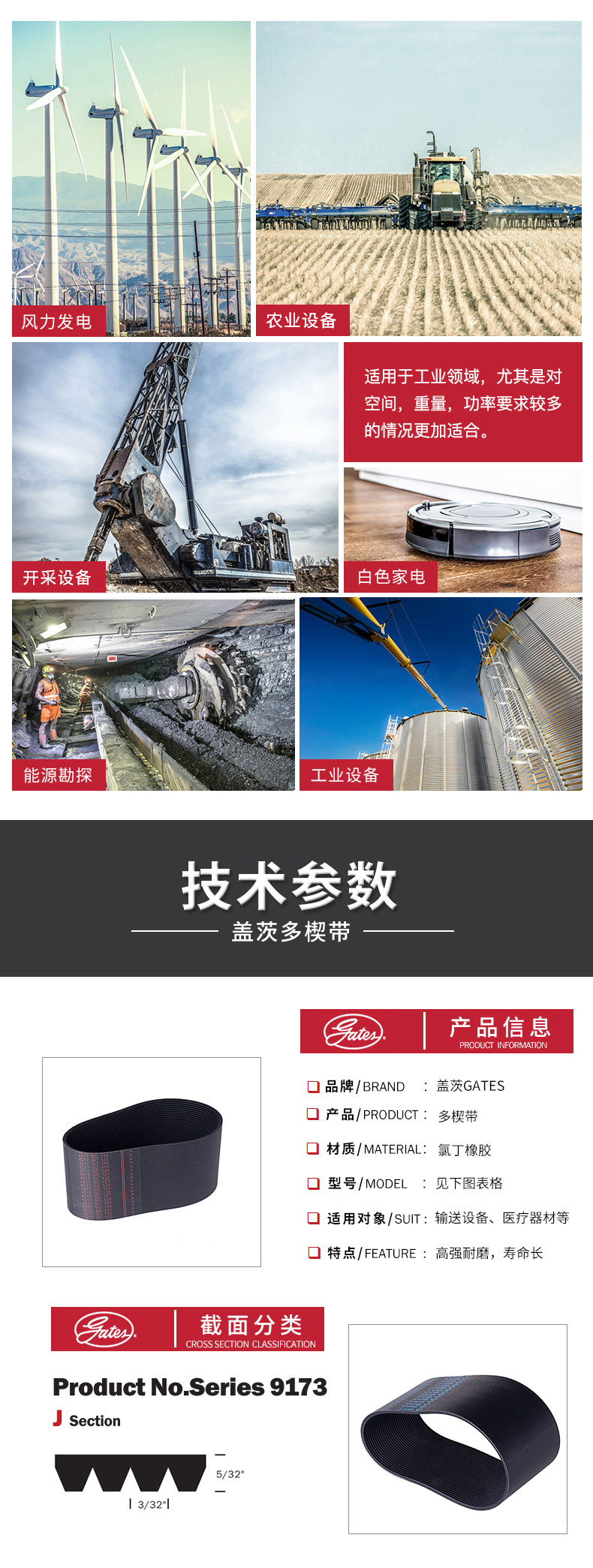 蓋茨GATES 多楔帶 Micro-V 橡膠傳動帶 460J