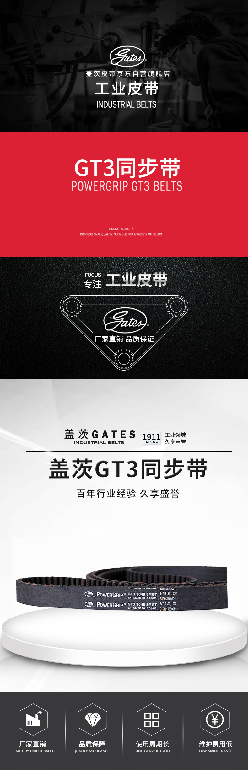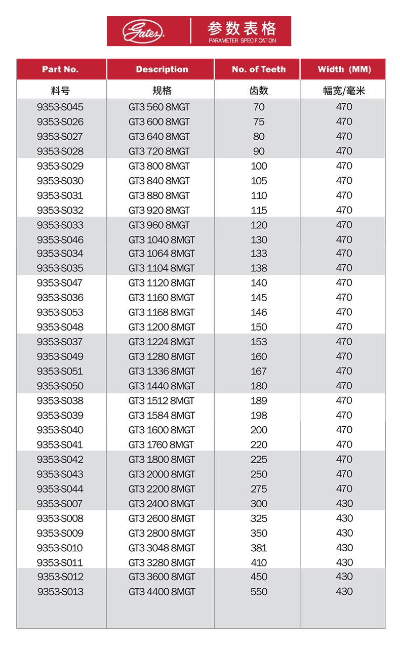 蓋茨的齒型結構可和對應帶輪匹配,帶輪和皮帶齒的高度嚙合能夠提高其傳動精度,降低運行噪音。