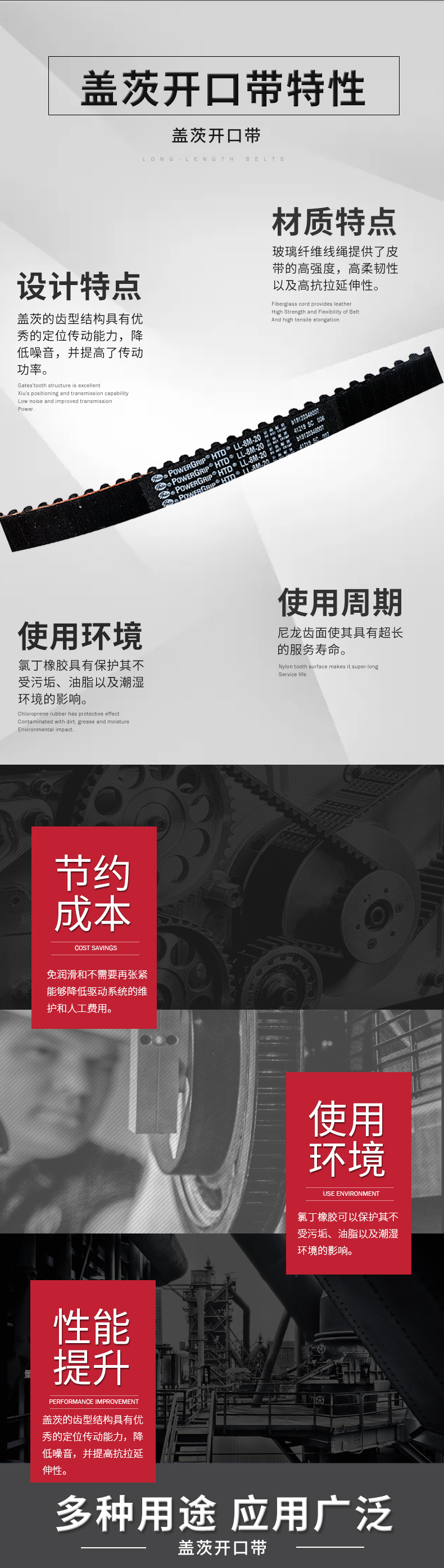 蓋茨的齒型結(jié)構(gòu)具有良好的定位傳動能力,能夠提高其傳動功率,降低運行噪音。