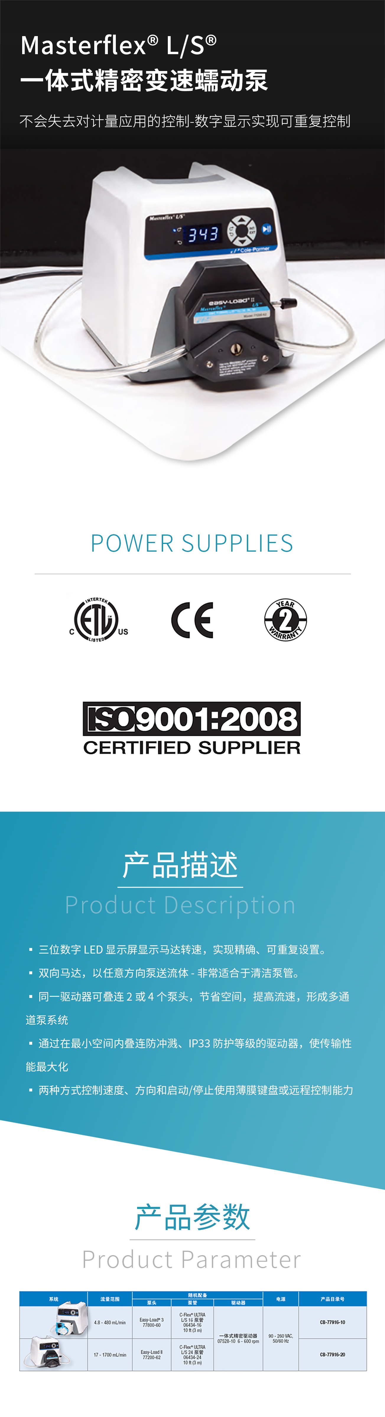 - Masterflex L/S 一體式精密變速蠕動(dòng)泵