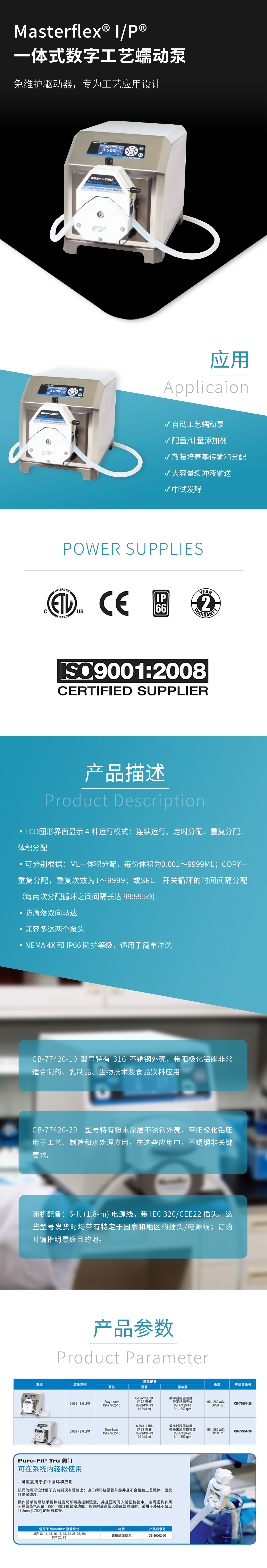 - Masterflex I/P 一體式數(shù)字工藝蠕動(dòng)泵