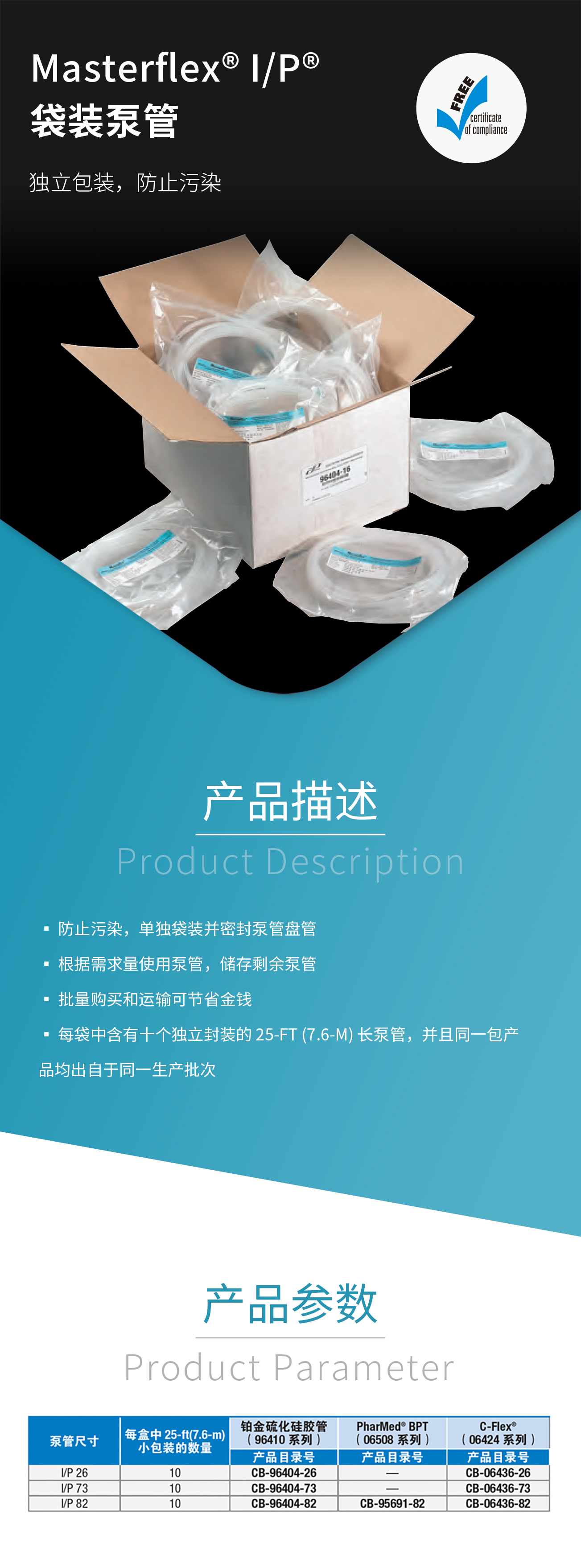 每袋中含有十個(gè)獨(dú)立封裝的 25-ft (7.6-m) 長(zhǎng)泵管,并且同一包產(chǎn)品均出自于同一生產(chǎn)批次