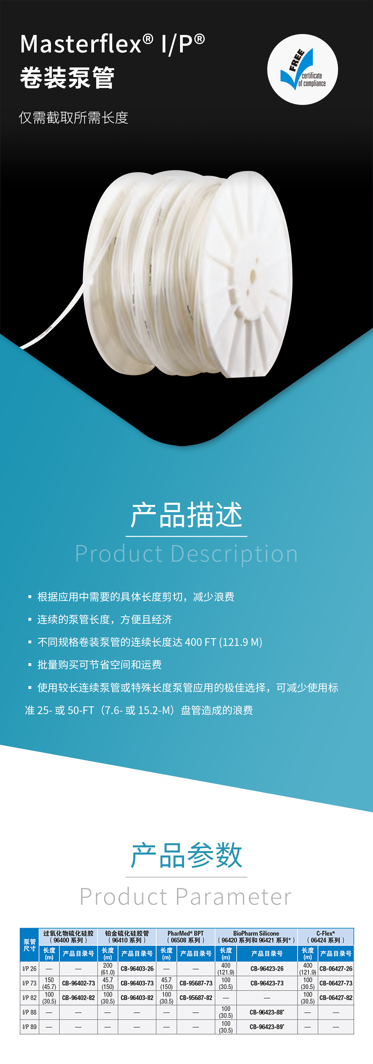- 不同規(guī)格卷裝泵管的連續(xù)長(zhǎng)度達(dá) 400 ft (121.9 m)
