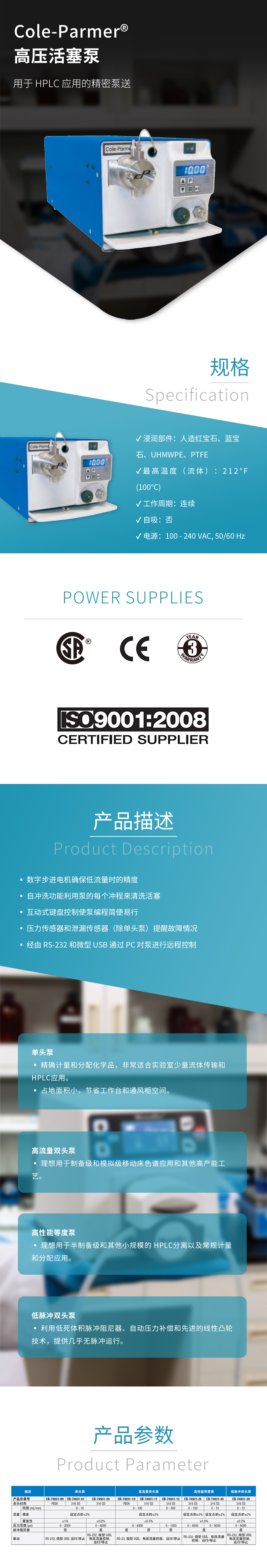 - Cole-Parmer 高壓活塞泵