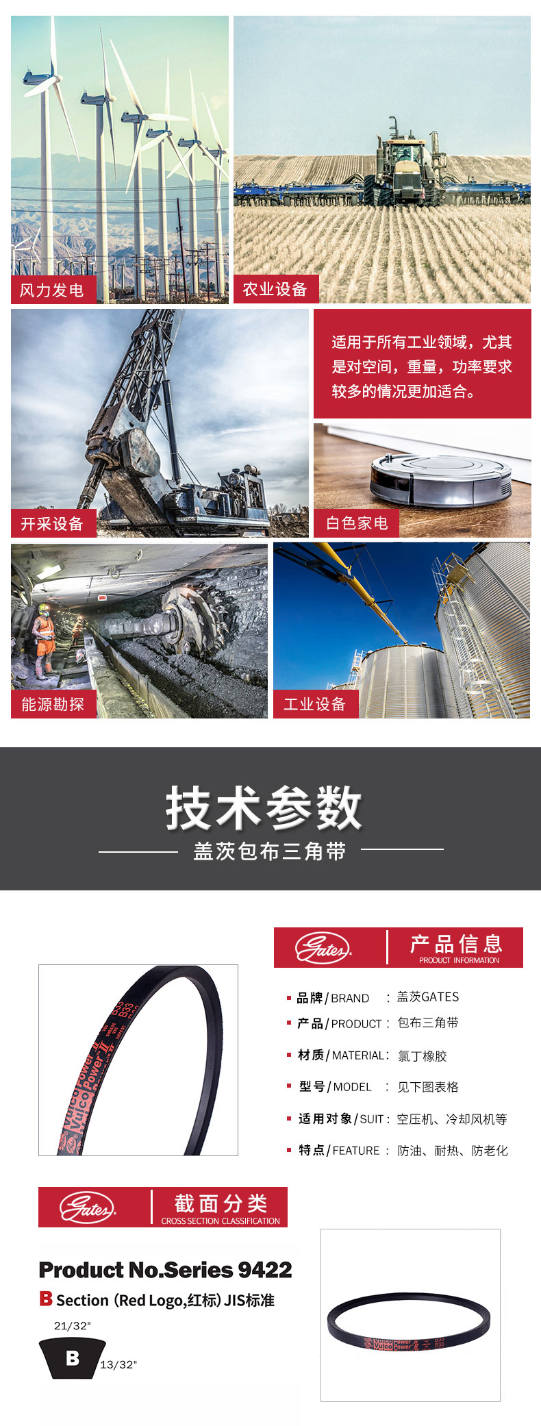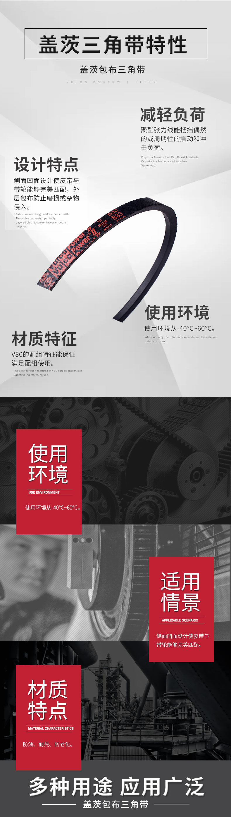 側面凹面設計使皮帶與帶輪能夠更好匹配,外層包布防止磨損或雜物侵入。