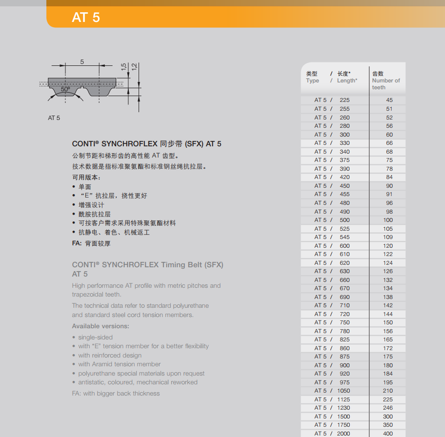 - 德國(guó)馬牌Continental 工業(yè)皮帶 聚氨酯同步帶 SYNCHROFLEX AT5