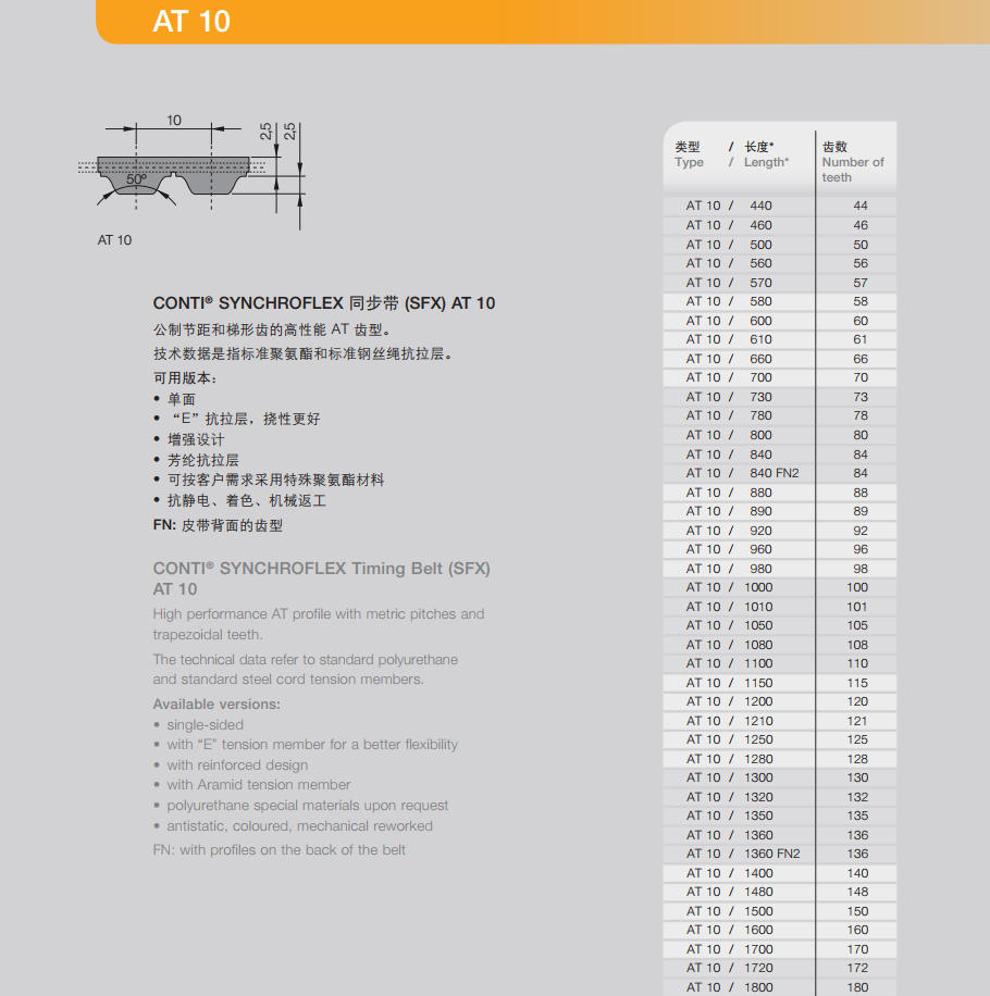 - 德國馬牌Continental 工業(yè)皮帶 聚氨酯同步帶 SYNCHROFLEX AT10