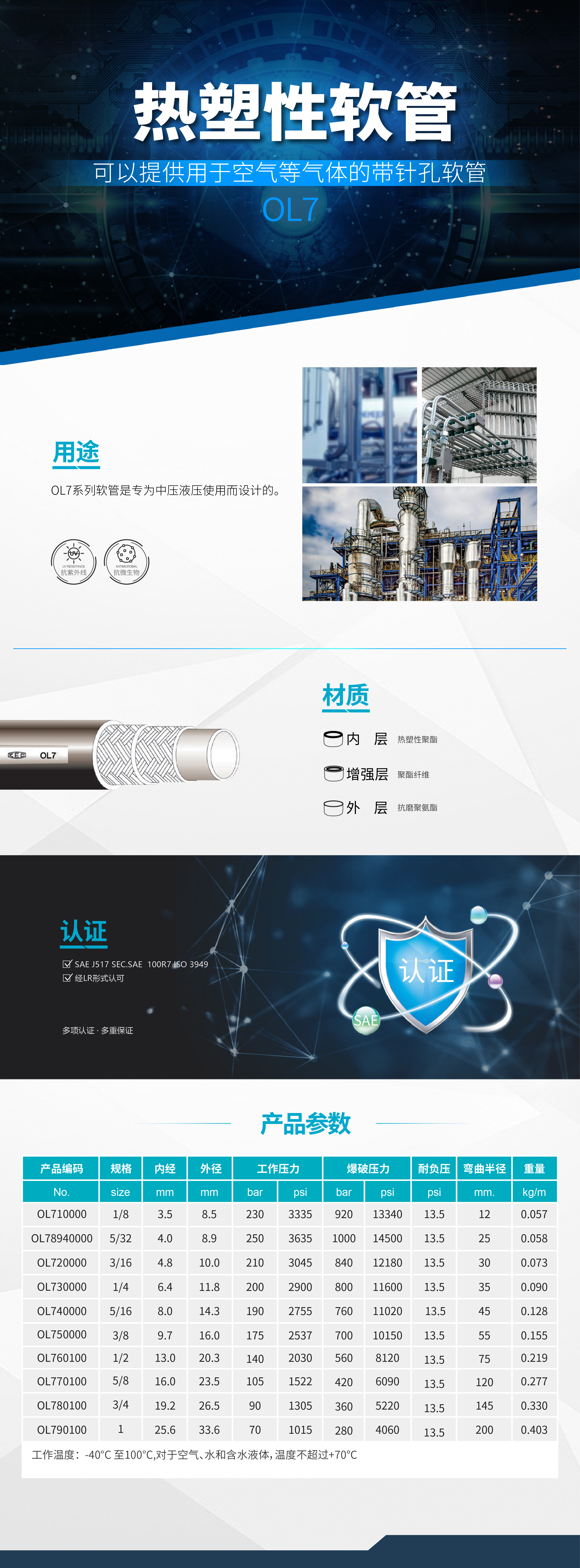 OL7系列軟管是為中壓液壓使用而設(shè)計的。