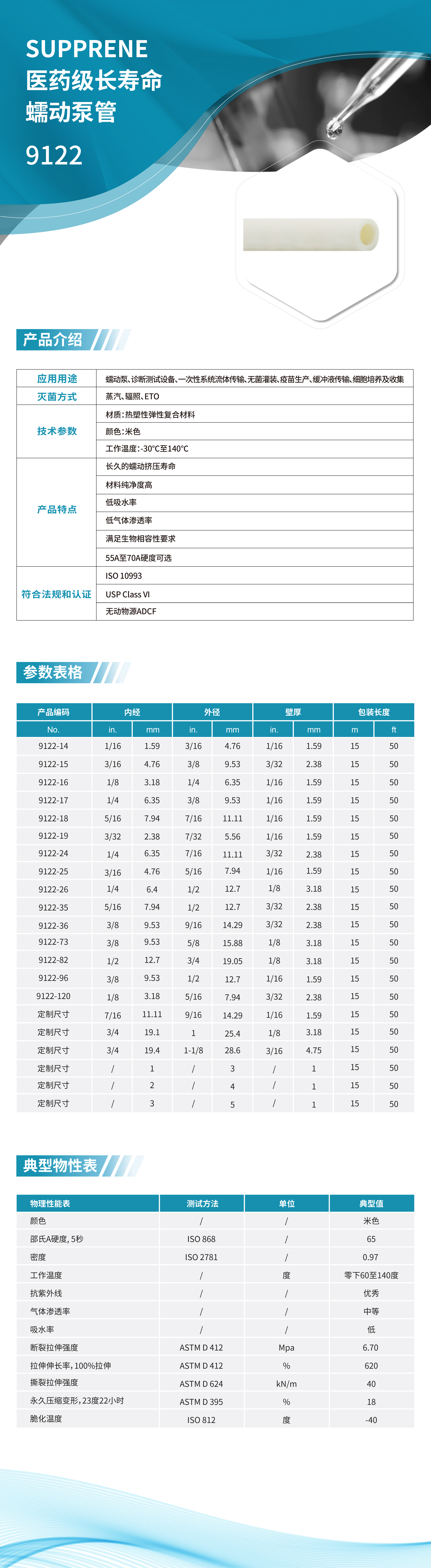 - 醫(yī)藥級(jí)長(zhǎng)壽命蠕動(dòng)泵管 9122
