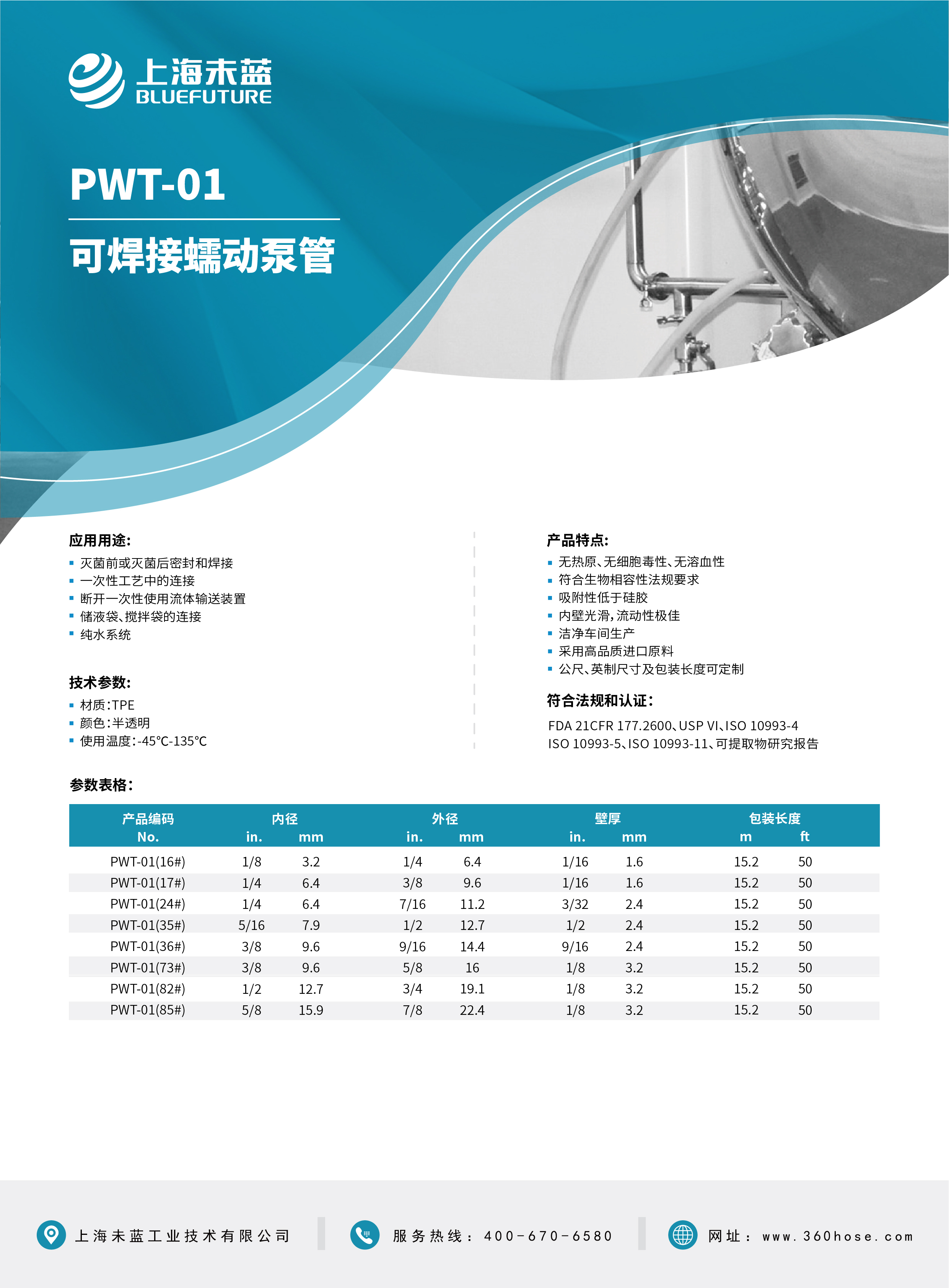 - Biosalus-PWT-01 可焊接蠕動泵管