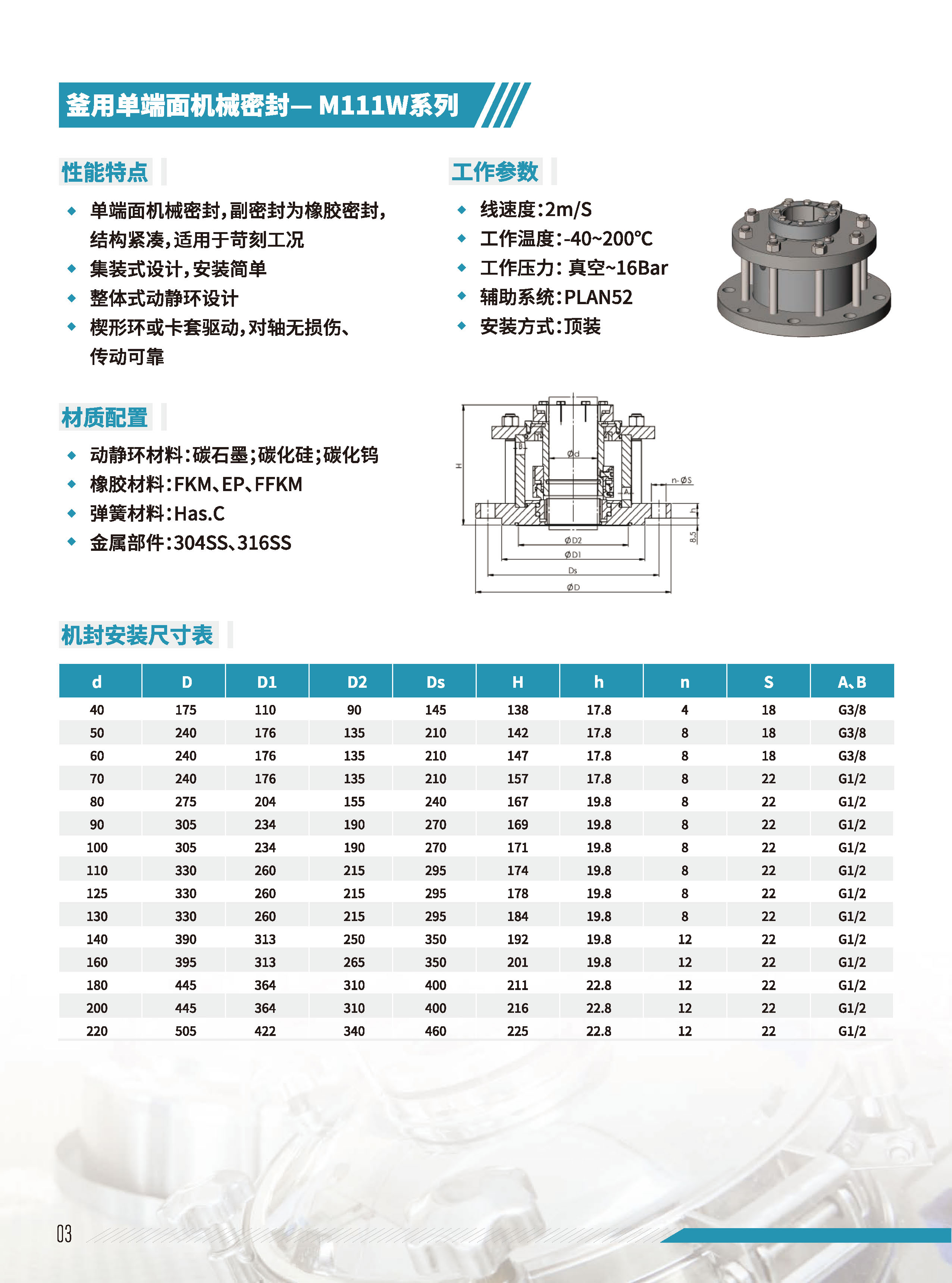 釜用單端面機械密封M111W系列