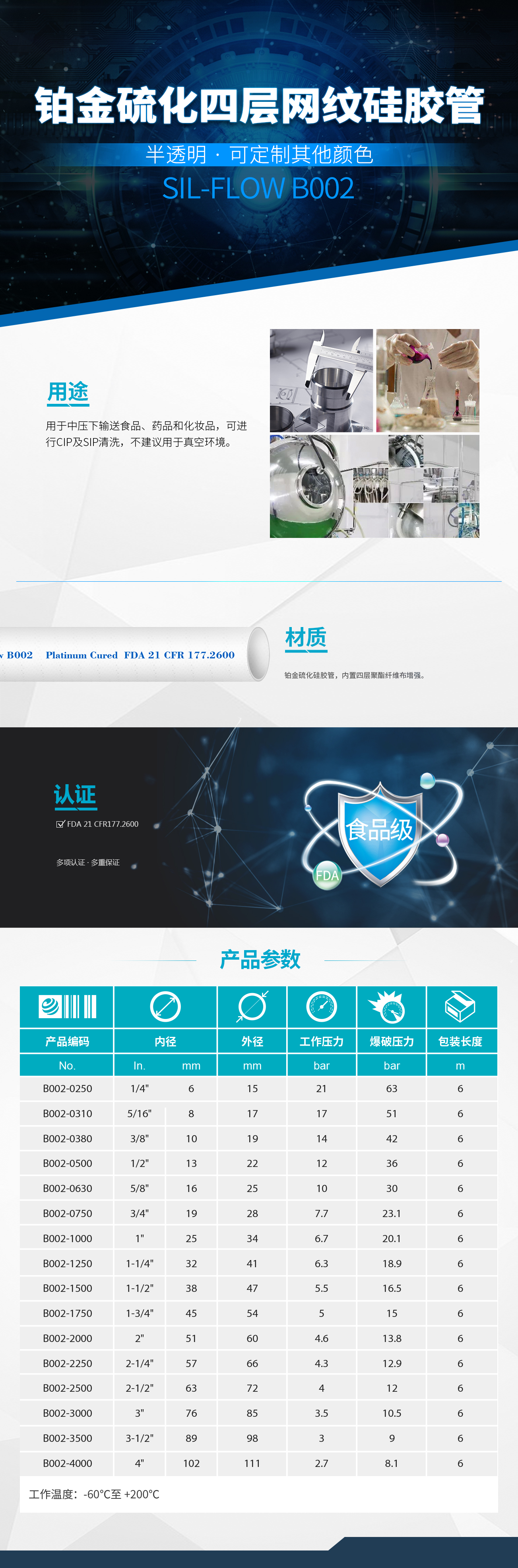 - 鉑金硫化四層網(wǎng)紋硅膠管 Sil-Flow B002