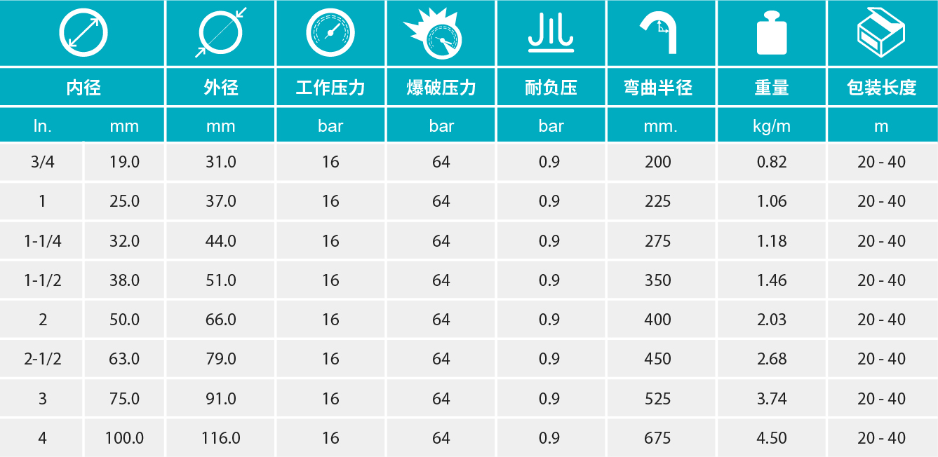 - 【外層】耐老化耐腐蝕EPDM合成橡膠,黑色,表面布紋